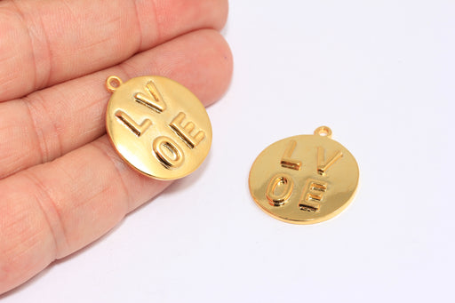 23 mm 24 Ayar Parlak Altın Madalyon Takılar, Aşk Kolyesi, Aşk Yazılı Madalyon, MTE526