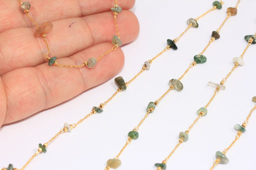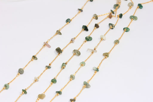 4 mm 24 Ayar Parlak Altın Boncuklu Zincir, Tespih Tarzı Taş Zincirler, Yeşil Taş Boncuklu Zincir, BXB259-5