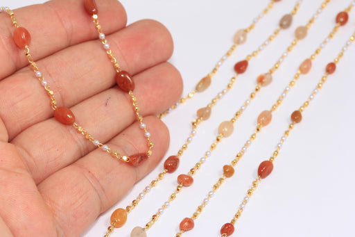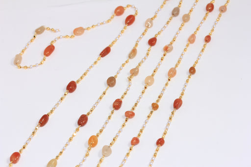 3,5 mm 24 ayar Parlak Altın Boncuklu Zincir, Tespih Tarzı Taş Zincirler, Kırmızı Taş Boncuklu Zincir, BXB116-5