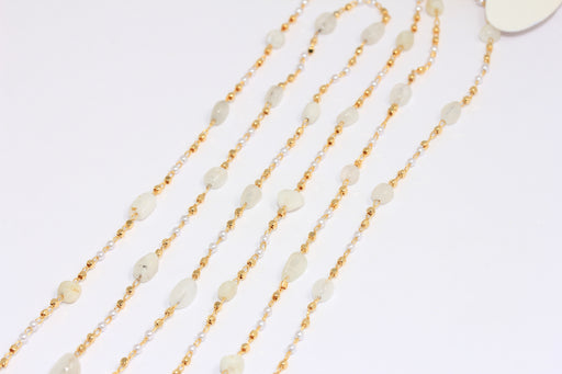 4 mm 24 Ayar Parlak Altın Boncuklu Zincir, Tespih Tarzı Taş Zincirler, Beyaz Taş Boncuklu Zincir, BXB70-5