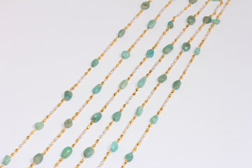 3,5 mm 24 ayar Parlak Altın Boncuklu Zincir, Tespih Tarzı Taş Zincirler, Yeşil Taş Boncuklu Zincir, BXB182-5