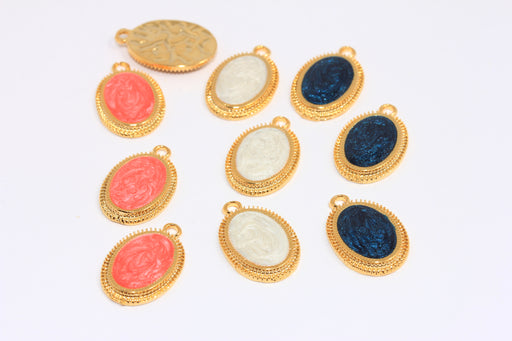 14x19 mm 24 Ayar Parlak Altın Madalyon, İnci Emaye Renkli Madalyon Kolye Ucu, Vintage Kolye Uçları, CHK91-8A
