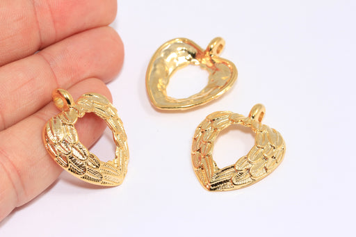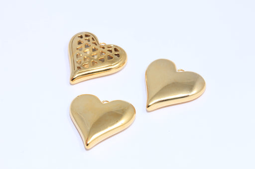 20x23mm 24 Ayar Parlak Altın Kalp Takılar, Kalp Kolye, Kabarık Kalp, İçi Boş Kalp Takılar, MTE1461