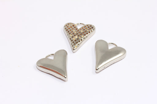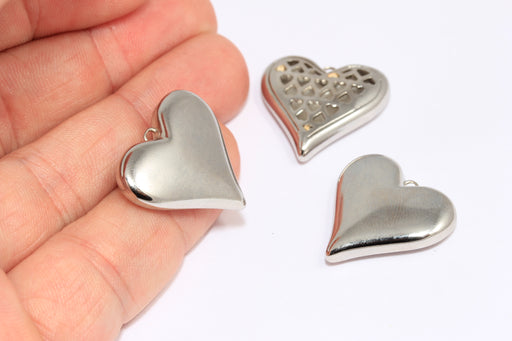 22x24 mm Rodyum Kaplama Kalp Takılar, Kabarık Kalp Kolye Ucu, Kalp Kolye Boncukları, MTE1293-2