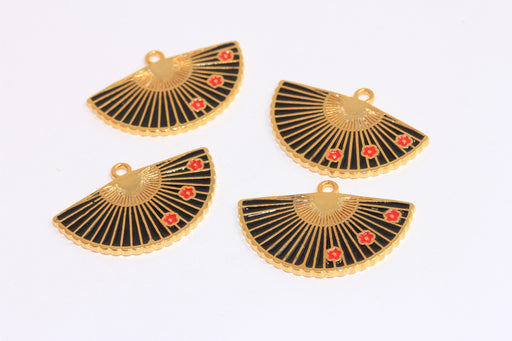 17,5x32 mm 24 ayar Parlak Altın Sektör Tılsımları, 1 Halkalı Siyah Emaye Renkli Yelpaze Kolye, MTE1349