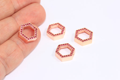 12,5 mm Gül Altın Kaplama Mikro Döşeme Altıgen Kolye, CZ Altıgen Takılar, ZRCN164