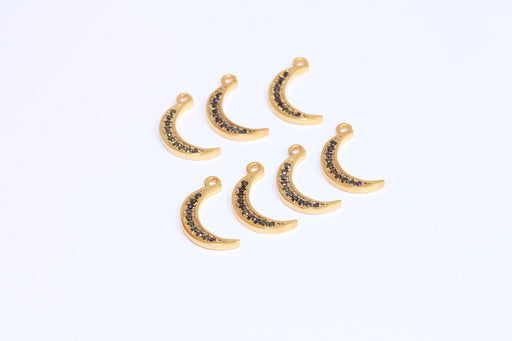 8x12mm 24 ayar Parlak Altın CZ Ay Takıları, Mikro Döşeme Siyah Taşlı Ay Boncukları, ZRCN747