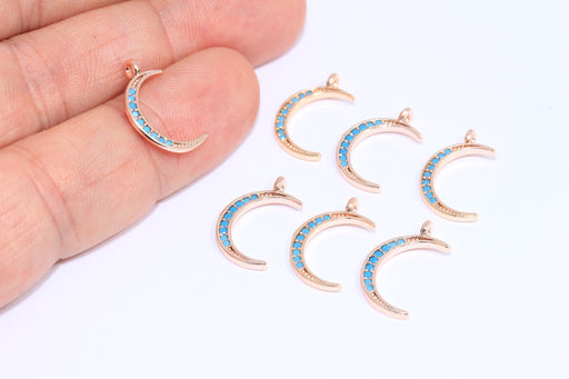 8x12 mm Gül Altın Kaplamalı CZ Ay Takıları, Mikro Döşeme Turkuaz Taşlı Ay Takıları, ZRCN136