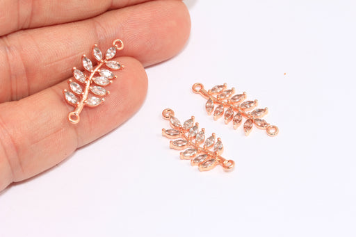10x20 mm Gül Altın Kaplama Yaprak Charm, Mikro Döşeme Baget Taşlı Yaprak, Kristal Yaprak Bağlantı Charmları, ZRCN768