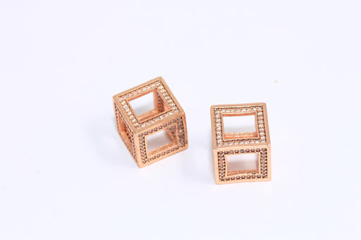 13 mm Gül Altın Kaplama Açık Küp Takılar, Mikro Döşeme Küp Kolye, CZ Açık 3D Küp Boncuklar, ZRCN778