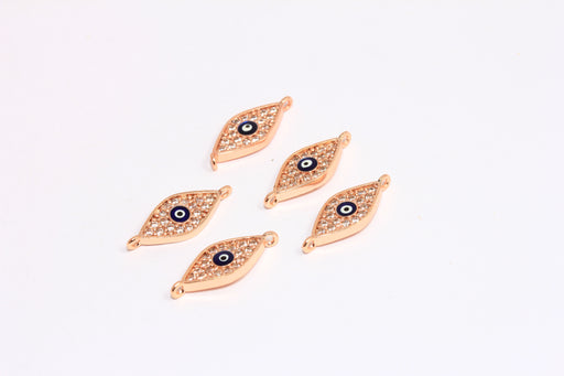 11x24mm Gül Altın Kaplamalı CZ Nazar Boncuğu, Mikro Döşeme Nazar Boncuğu, Emaye Nazar Boncuğu, ZRCN350