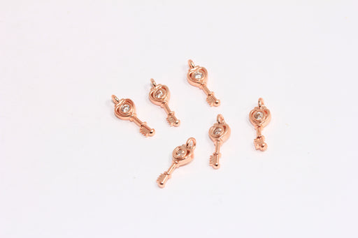 5x12 mm Gül Altın Kaplama Anahtarlık, Mikro Taşlı Anahtar Kolye, CZ Beyaz Kristal Taşlı Aşk Anahtarı Charm, ZRCN763