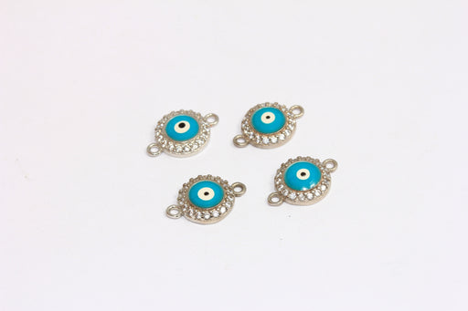 10 mm Rodyum Kaplamalı Kübik Zirkonya Nazar Boncuğu, Mikro Döşeme Beyaz Taş Nazar Boncuğu, Emaye Nazar Boncuğu Bağlantı Boncukları, ZRCN771