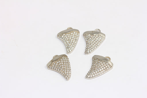 25x37 mm Rodyum Kaplama Üçgen Charm, Mikro Döşeme Beyaz Taş Charm, CZ Üçgen Kolye, ZRCN721