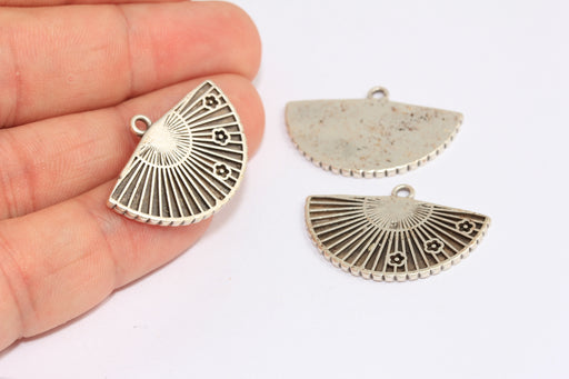 17,5x32 mm Antik Gümüş Sektör Takıları, Yelpaze Kolye, Yelpaze Kabaşon Takısı, XP503