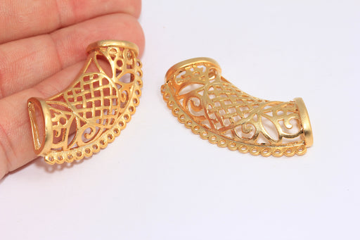20x47mm 24 Ayar Parlak Altın Kolye Ucu, Yaka Tüpleri, Gerdanlık Ayarları, Filigran Kolye Ucu, BRT725
