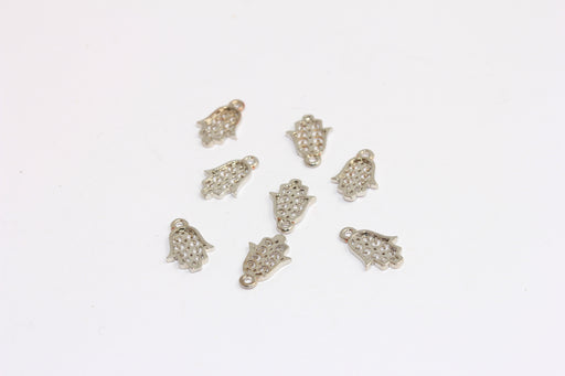 7x12 mm Rodyum Kaplamalı Hamsa Charm, Gümüş Hamsa Boncukları, Fatima Eli Charmları, BRT779