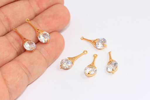 7x21 mm 24 Ayar Parlak Altın CZ Takılar, Kristal Damla Takılar, Kristal Küpe Takıları, Beyaz Taş Boncuklar, BRT835