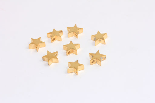 10 mm 24 Ayar Parlak Altın Kaplama Yıldız Boncuklar, Yıldız Takılar, Üst Delik Yıldız, Yıldız Ara Boncuklar, BRT636