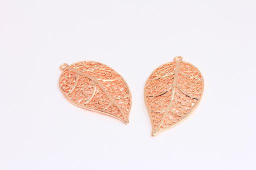 22x37 mm Gül Altın Kaplama Yaprak Kolye, Büyük Yaprak Tılsımı, Yaprak Kolye, Filigran Tılsım, ROSE353