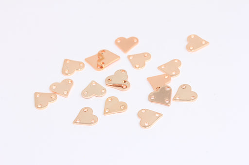 9 mm Gül Altın Kaplama Kalp Takıları, Kalp Paraları, Üç Delikli Kalp Boncukları, Bağlantı Takıları, ROSE451