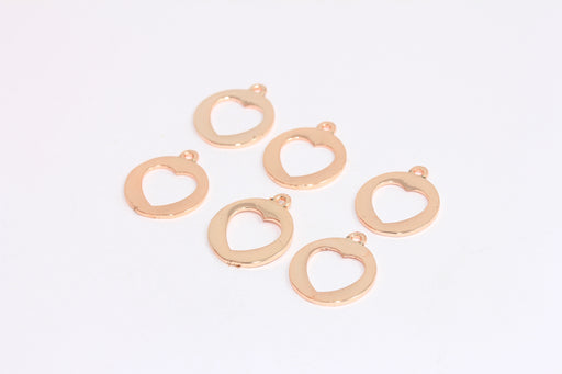 14 mm Gül Altın Kaplama Kalp Disk, Kalp Kolye, Mini Aşk Boncukları, Kesik Kalp, ROSE303
