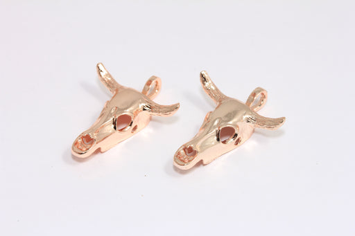 27x34 mm Gül Altın Kaplama Sığır Takıları, Bufalo Başı Kolye Ucu, Sığır Kafatası, ROSE469