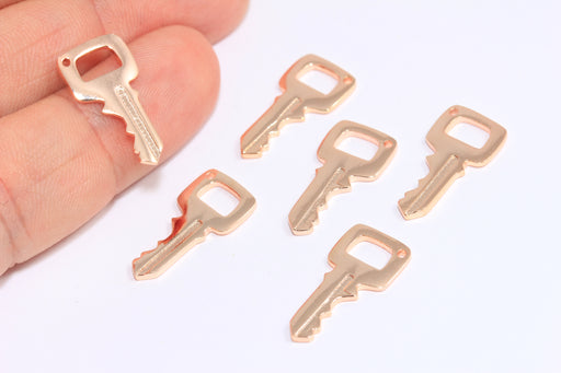 10x20 mm Gül Altın Kaplama Anahtar Takıları, Anahtar Kolye Ucu, Anahtar Boncukları, Kolye Anahtar Takısı, ROSE124