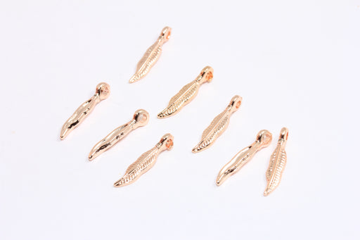 3x18 mm Gül Altın Kaplama Yaprak Takılar, Yaprak Kolye, Küçük Yaprak Boncuklar, ROSE294