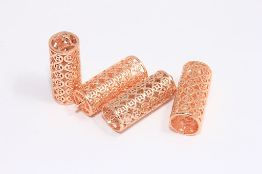 10x25 mm Gül Altın Kaplama Püskül Şapka, Filigran Püskül Şapkalar, Tüp Boncuk Şapkalar, ROSE227