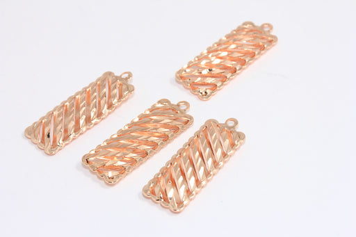 12x30 mm Gül Altın Kaplama Çubuk, Dantel Kolye, Uzun Çubuk Kolye, Filigran Çubuk Takılar, ROSE231