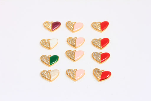 15 mm 24 ayar Parlak Altın CZ Kalp Charm, Mikro Döşeme Kalp, İsteğe Bağlı Mine Renkli Kalp, CZ Kolye Kalp Kolye Ucu