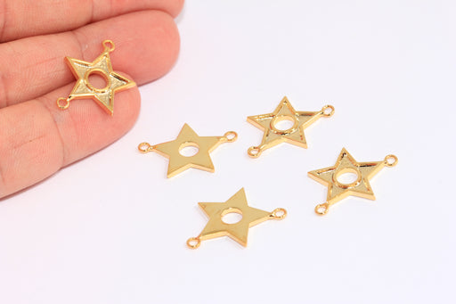 15x22mm 24 Ayar Parlak Altın Yıldız Takılar, İki Delikli Takılar, Yıldız Bağlantısı, Kabaşon Yıldız Boncuklar, ROSE289