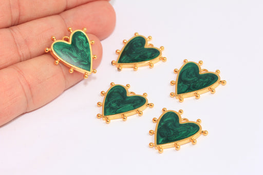 21 mm 24 ayar Parlak Altın Kalp Takılar, Aşk Kolyesi, İnci Yeşili Mine Kalp Madalyonu, XP445