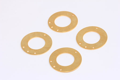 25 mm 24 Ayar Parlak Altın Kaplama Yuvarlak Disk, Küpe Ayarları, 3 Delikli Kolye, BRT742