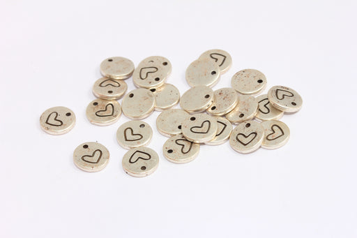 10 mm Antik Gümüş Kaplama Kalp Takılar, Kalp Madeni Para Boncukları, Kazınmış Kalp Madeni Paralar, XP467