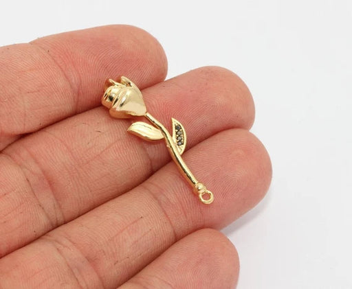 10x32mm 24 Ayar Parlak Altın Kaplama Lale Kolye, Kolye Ucu MTE1233