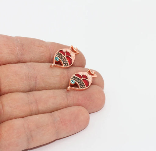 12x26mm Gül Altın Balık Takıları, Mikro Taşlı, Kolye MTE1127