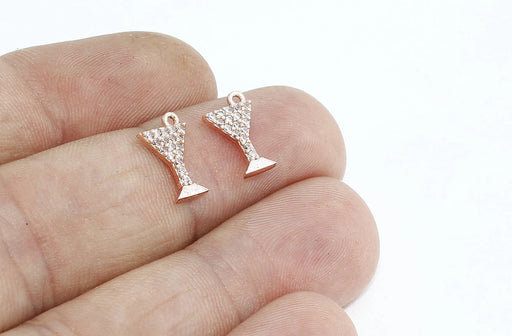 17x24mm Gül Altın Hamsa Charm, Kübik Zirkonya, Hamsa Charm ZRCN527