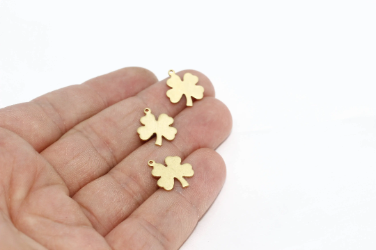 13x16mm Ham Pirinç Yonca Tılsımı, Yonca Kolye Ucu, Yonca SOM284