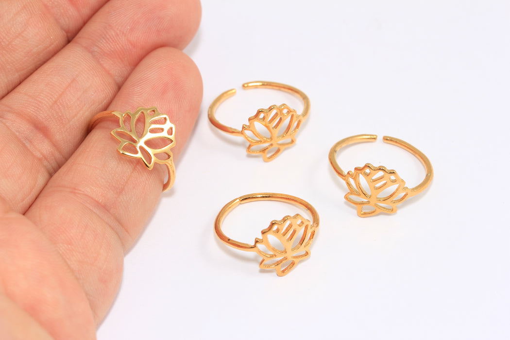 16-17 mm 24 Ayar Parlak Altın Lotus Yüzükler, Altın Yaprak Yüzükler, Yaprak Takılar, SLM1059