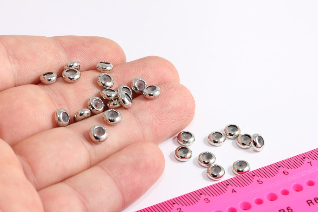 3x6mm Rodyum Kaplamalı Kauçuk Tıpa, Rondelle Aralayıcı Boncuklar, Bağlantı Boncukları, Gümüş Kauçuk, Rodyum Kaplamalı Bulgular, ZRCN430